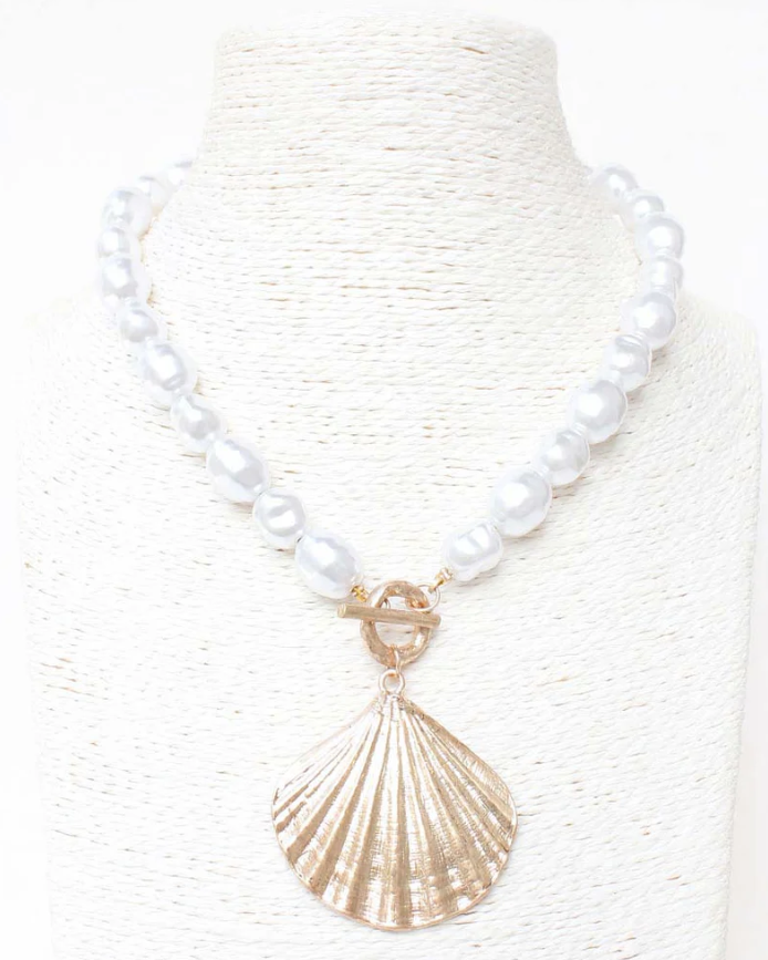 Pearl and Hammered Shell Necklace - Gold - FINAL SALE