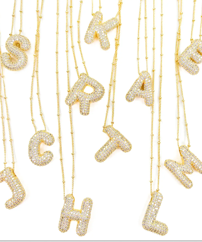 CZ Balloon Initial Bubble 18K Necklace - Gold- FINAL SALE