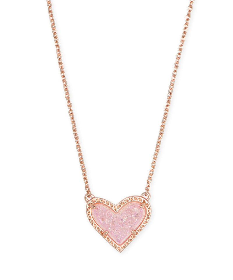 Kendra Scott Ari Heart Rose Gold Pendant Necklace - Pink Drusy