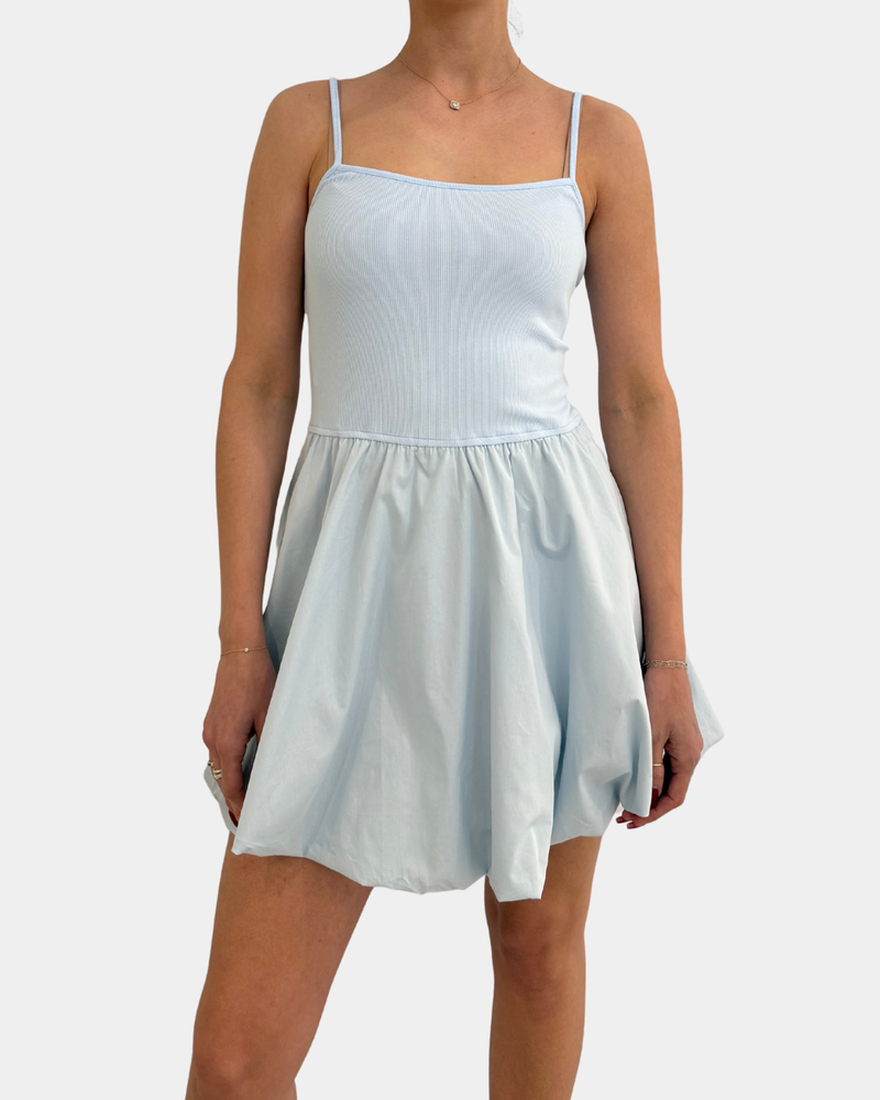Ribbed Bubble Mini Dress - Baby Blue