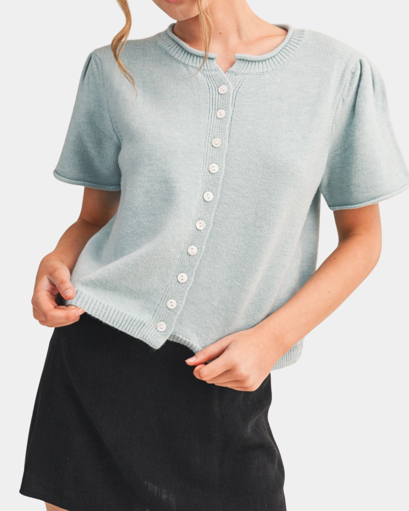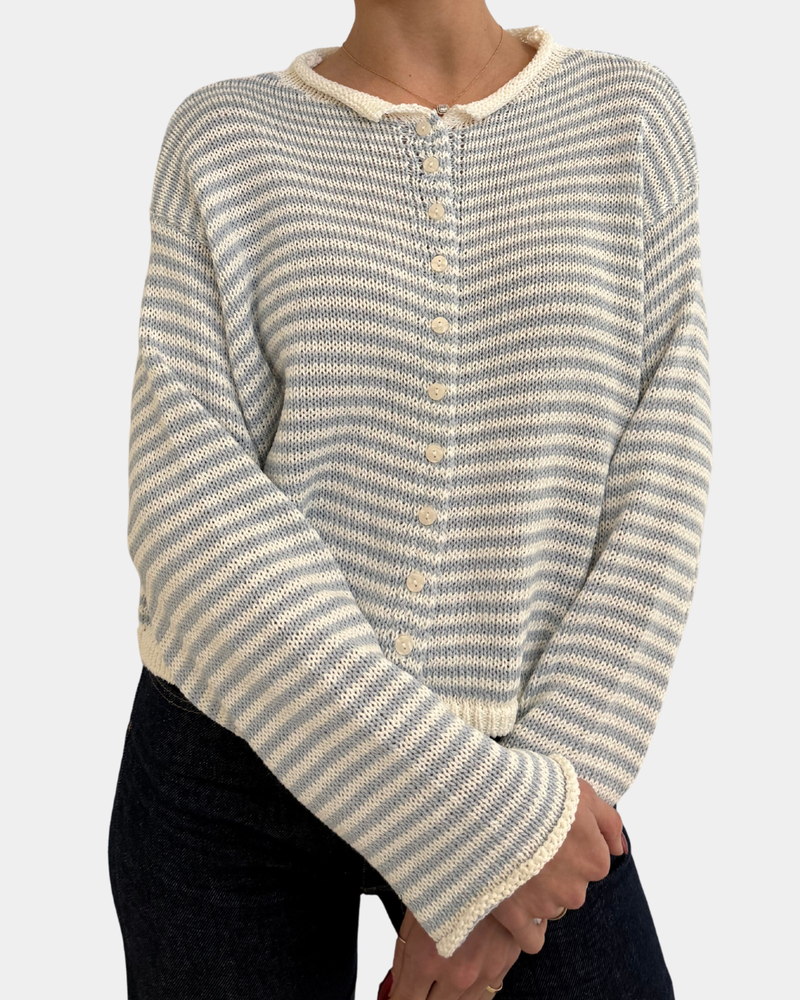 Striped Button Down Cardigan - Sky Blue/White