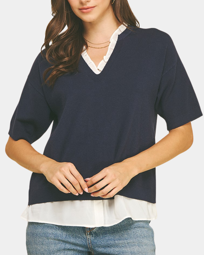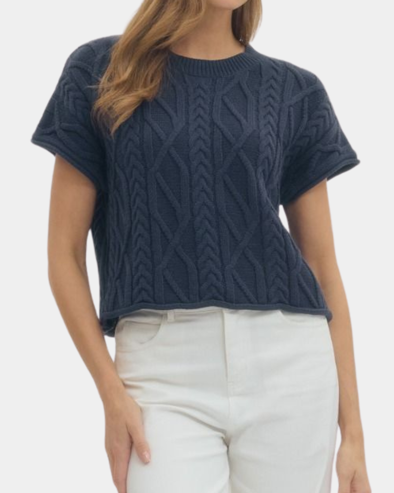 Cable Knit Top - Navy