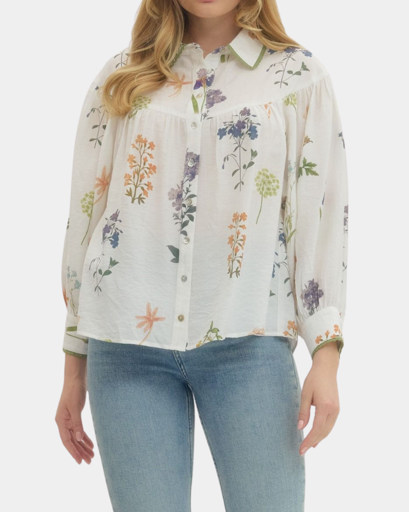 Botanical Button Down Top - Ivory