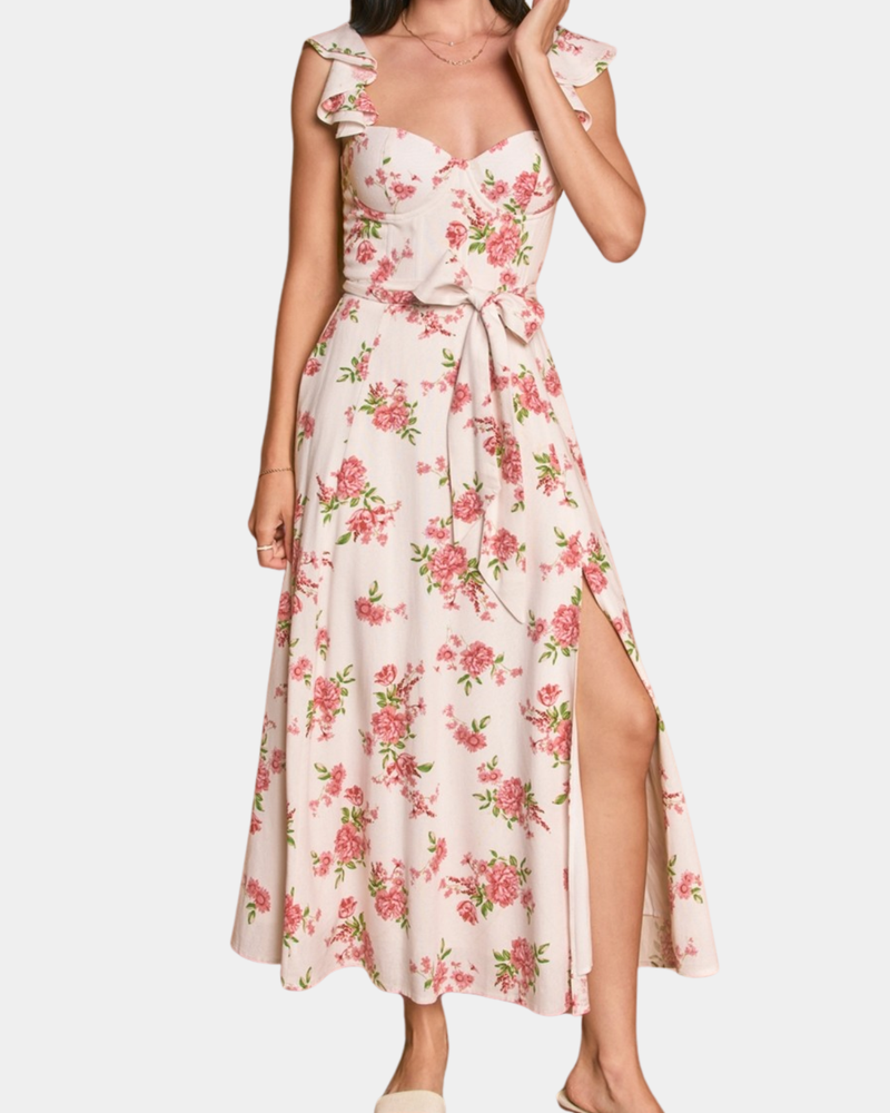 Floral Heart Neck Dress - Multi