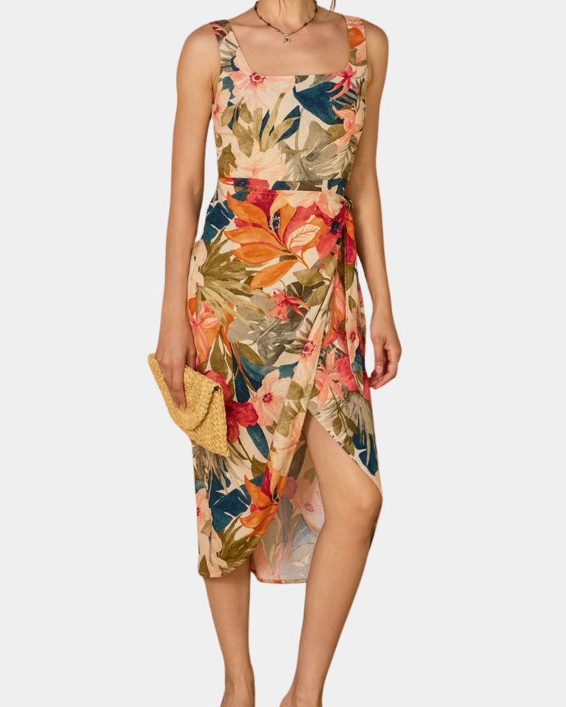 Tulip Hem Midi Wrap Dress - Botanic Fresco