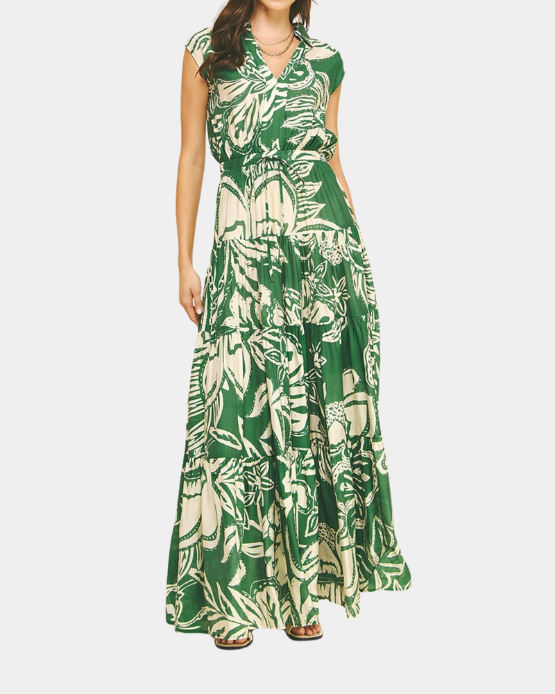 Floral Tiered Maxi Dress - Green
