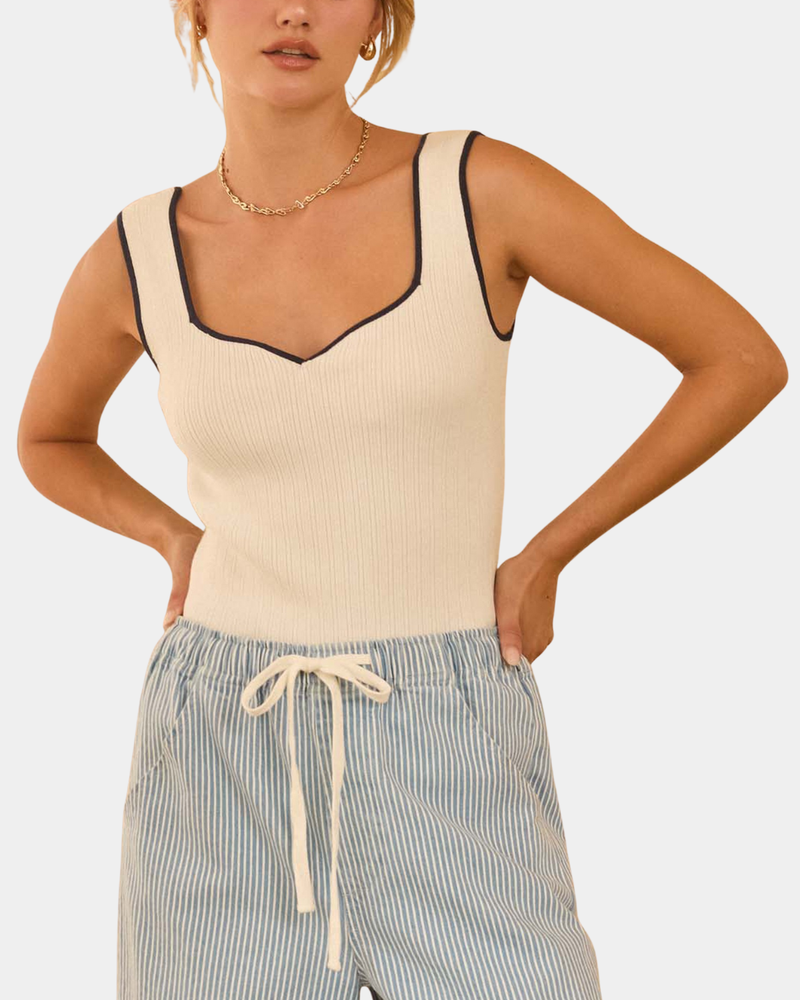 Heart Neck Tank - White/Navy