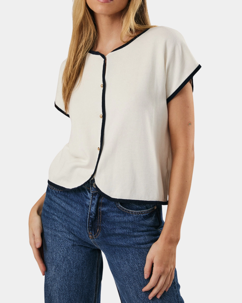 Button Down Knit Top - White/Navy