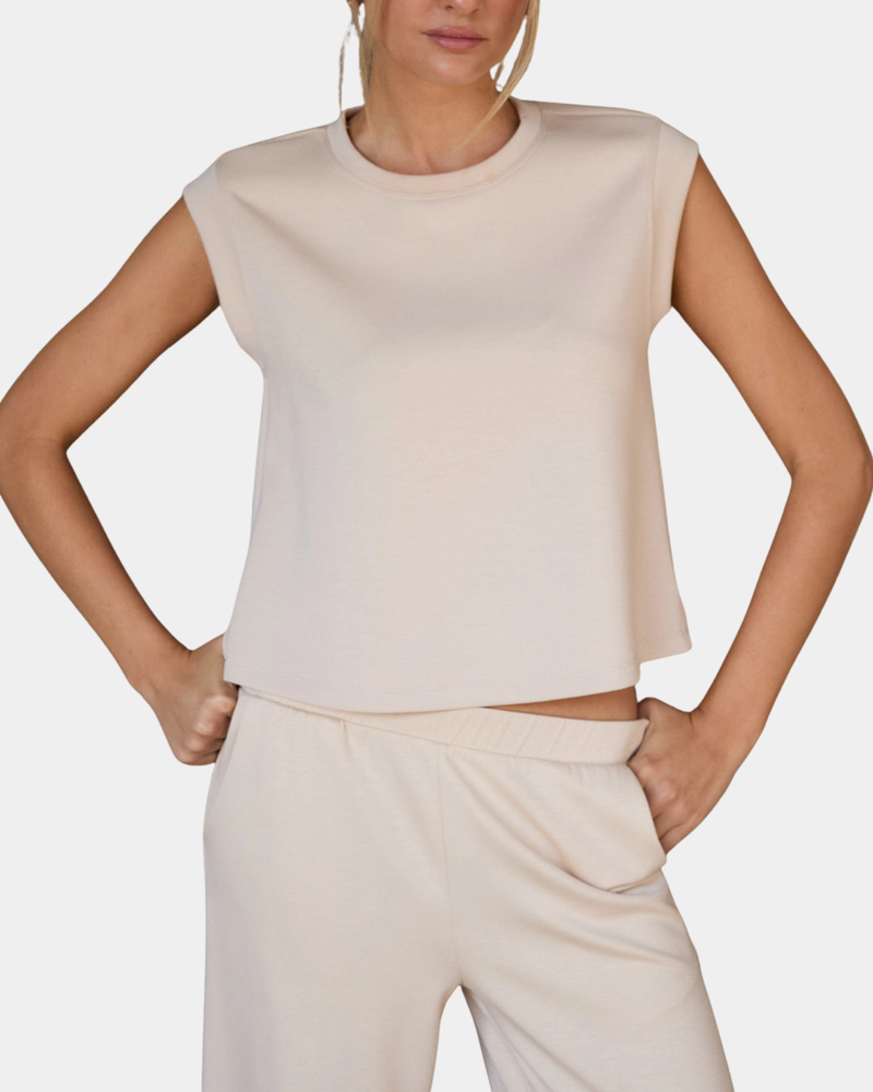 Round Neck Sleeveless Top - Beige