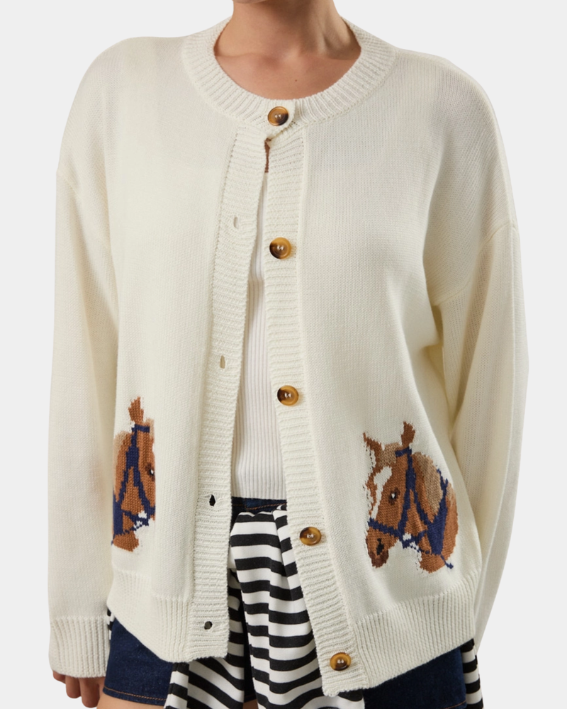 Horse Graphic Cardigan - White