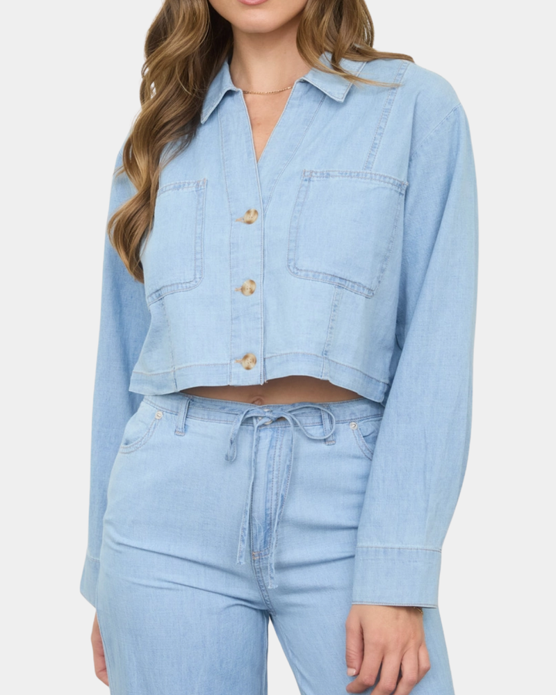 Cropped Button Down Top - Denim
