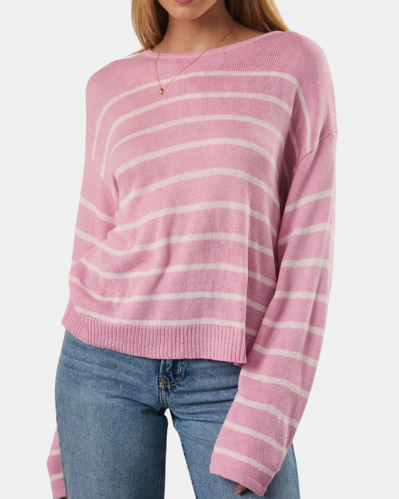 Long Sleeve Stripe Sweater - Pink/Light Pink
