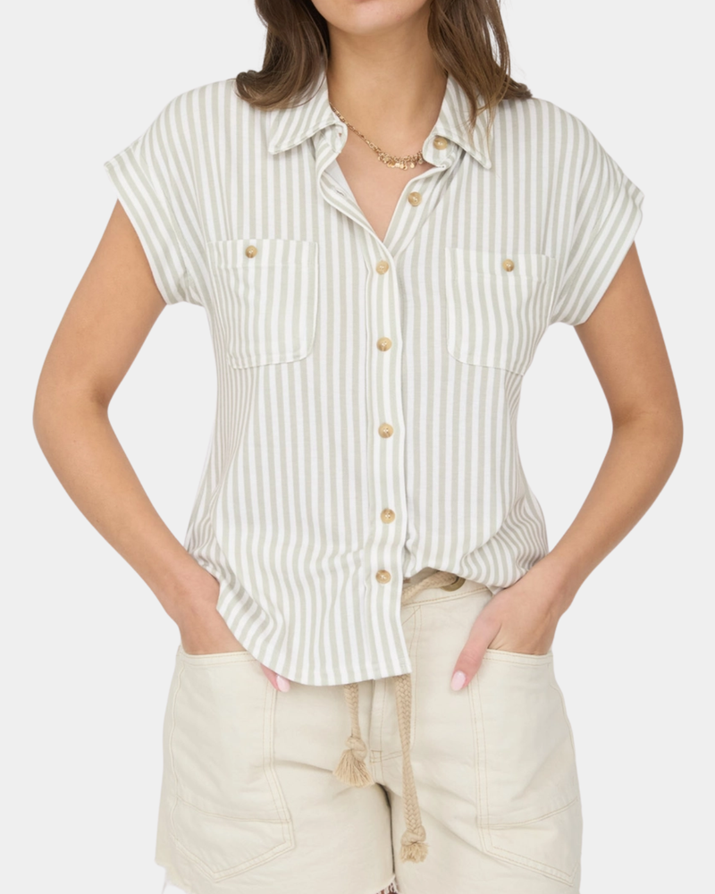 Stripe Collared Top - Light Olive