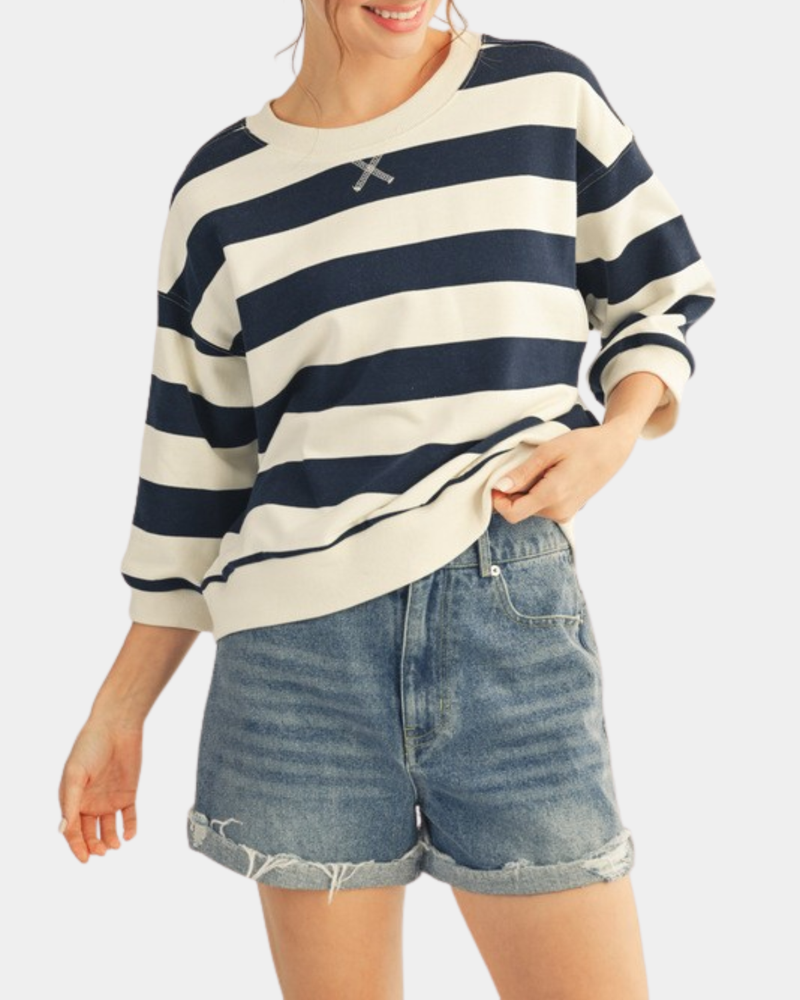 V-Notched Stripe Top - Navy