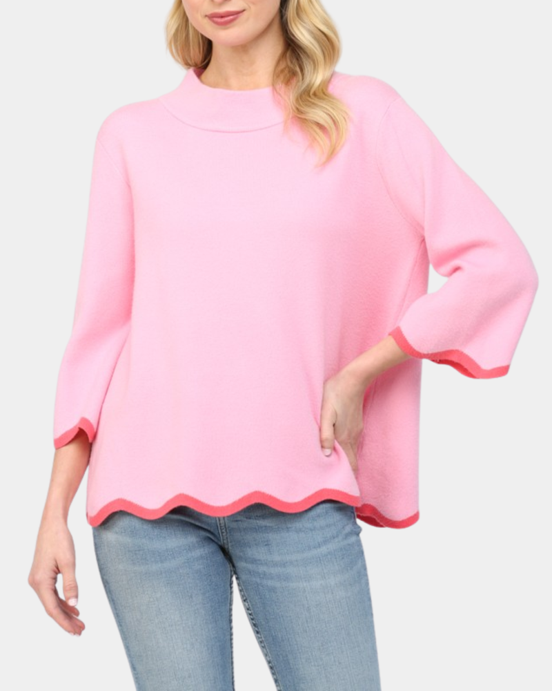 Scallop Edge Mock Neck Top - Bubblegum Pink/Coral