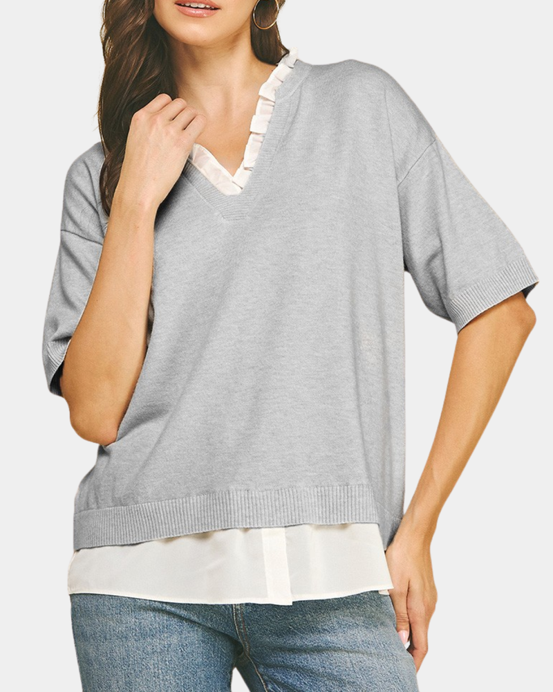 Mixed Media Layered Top - Heather Grey