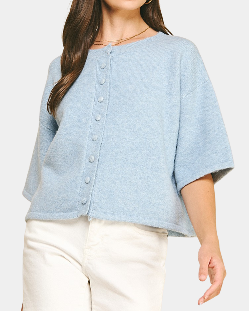 Button Down Sweater - Baby Blue