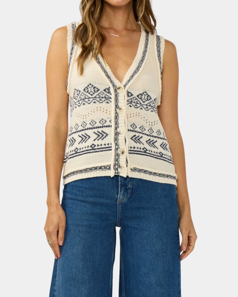 Sweater Vest Top - Natural/Navy