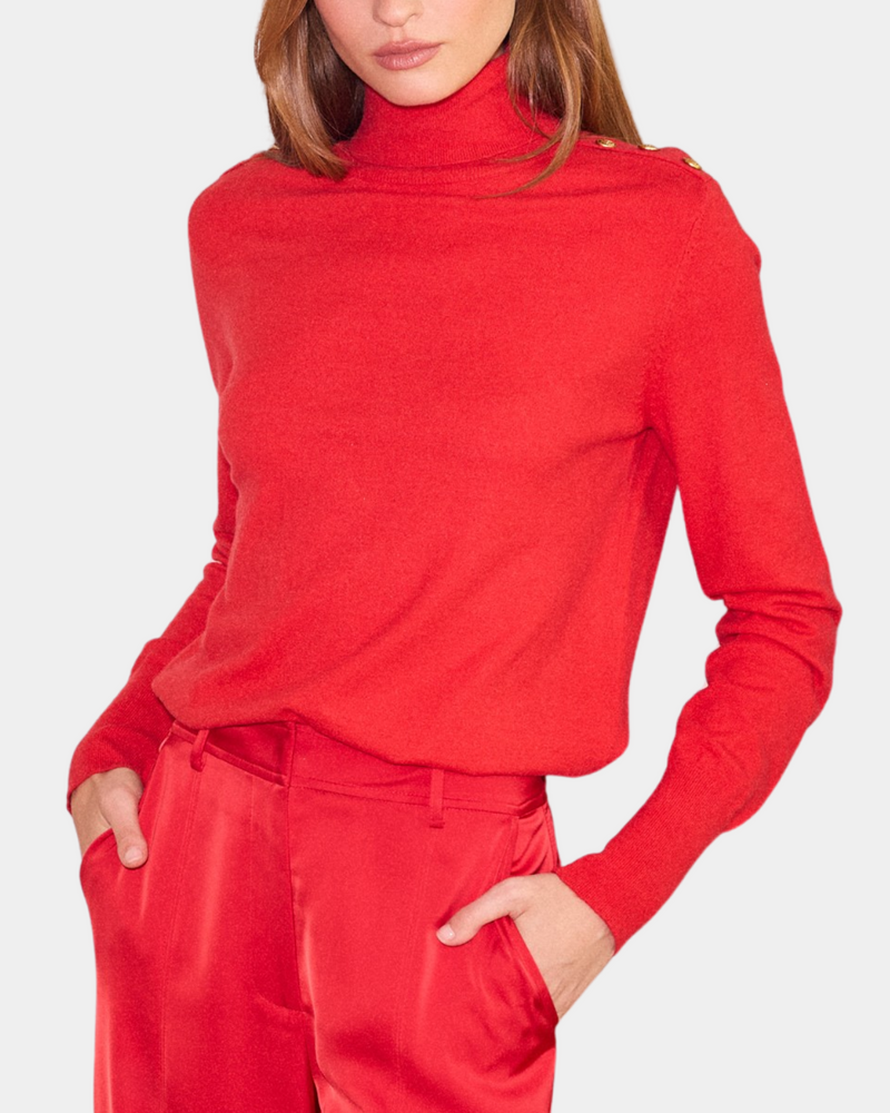 Turtleneck with Button Detail - Red