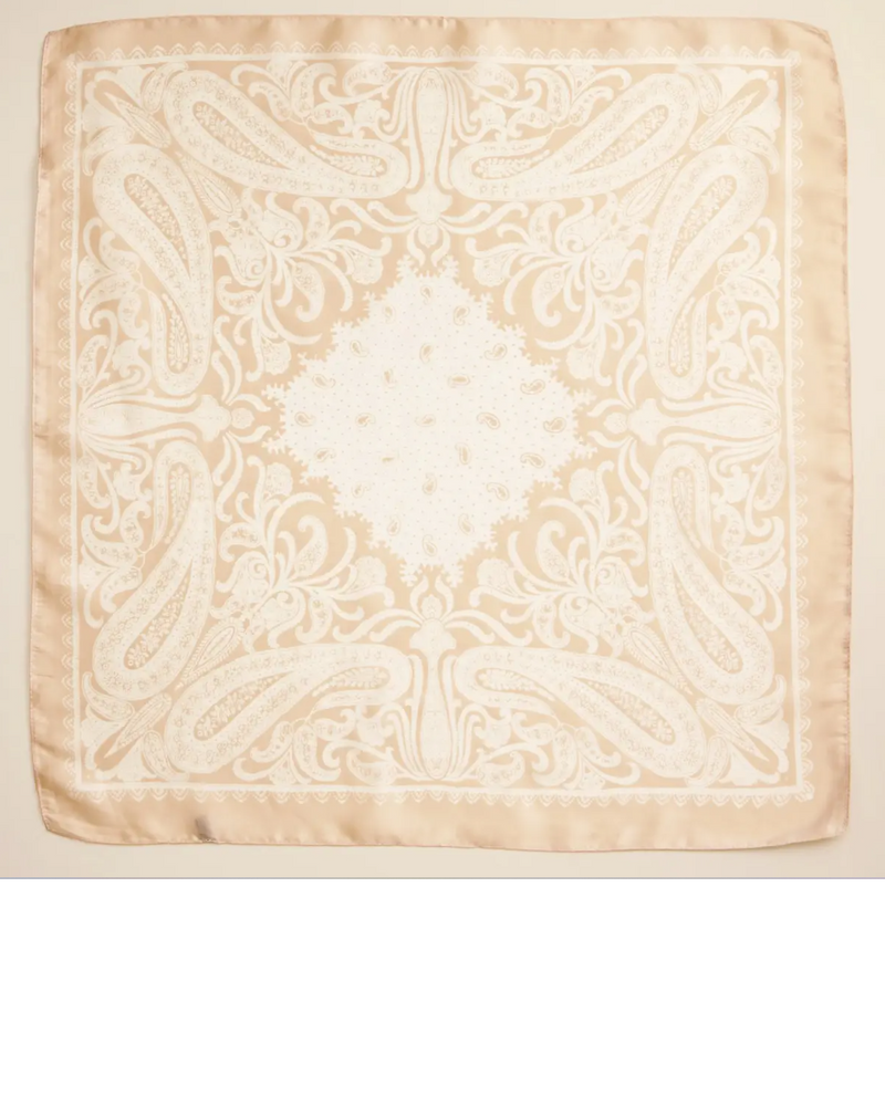 Silk Paisley Bandana Scarf - Beige
