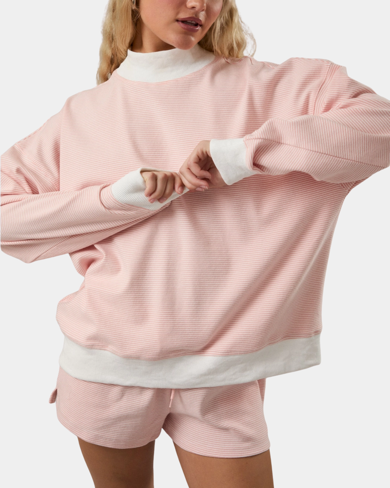 Mock Neck Stripe Sweatshirt - Peach/Cream