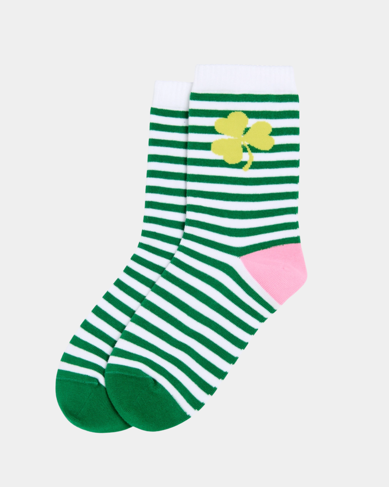 Striped Shamrock Socks - Green/White