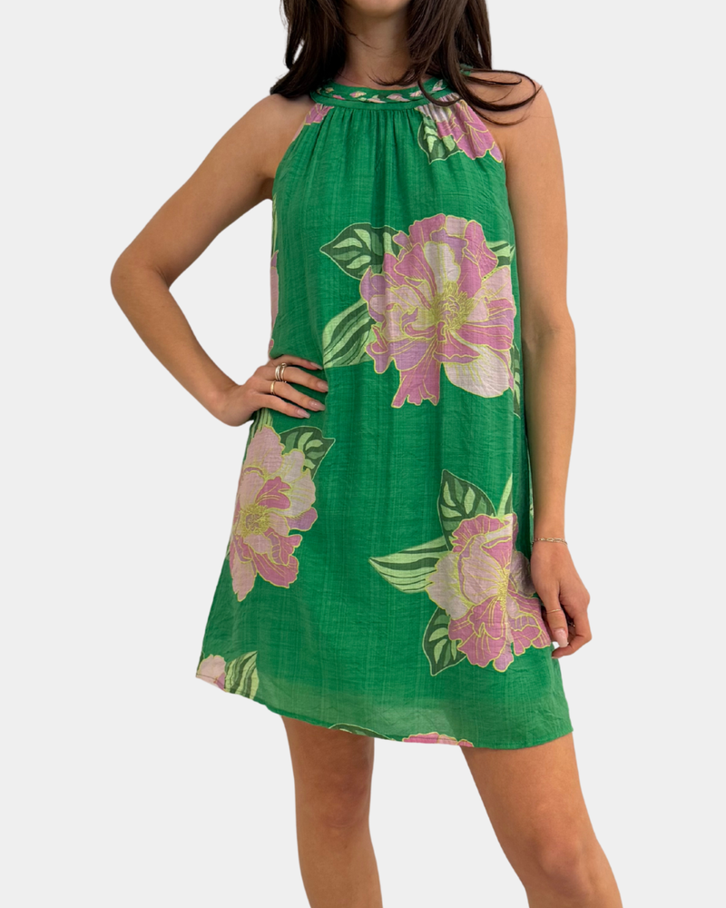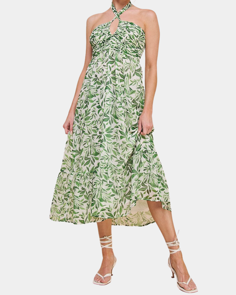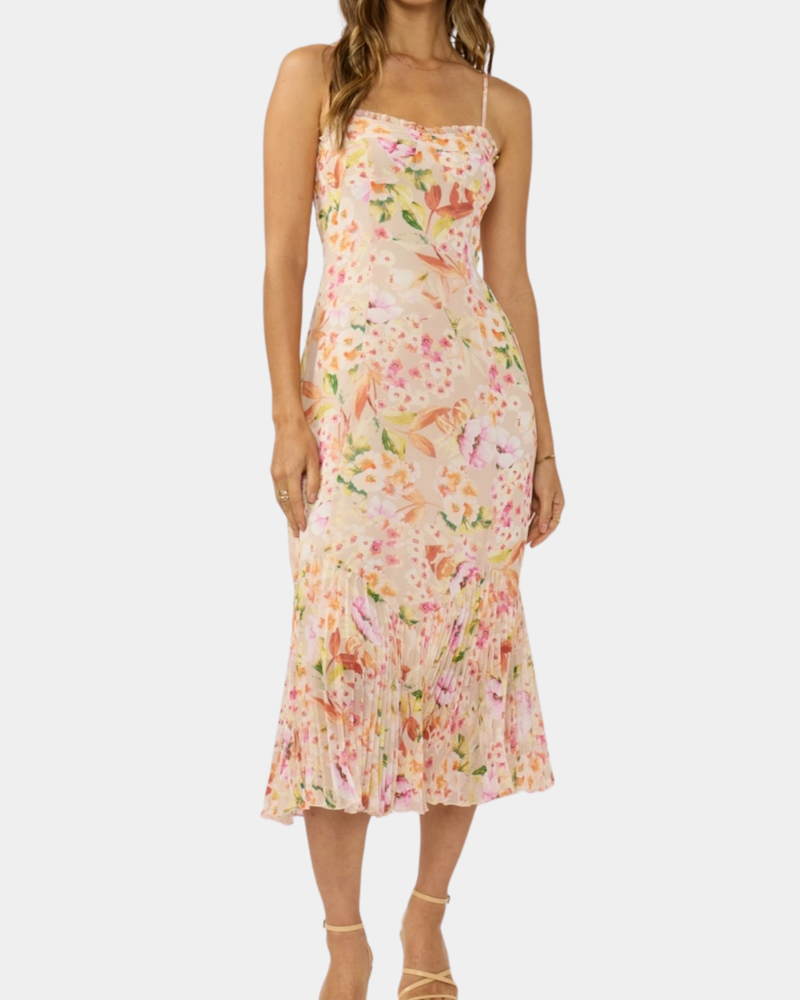 Spaghetti Strap Chiffon Dress - Natural/Fuschia