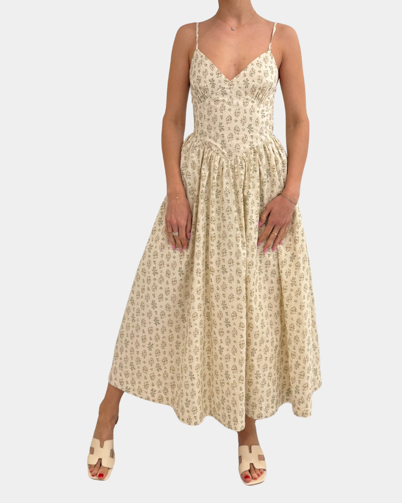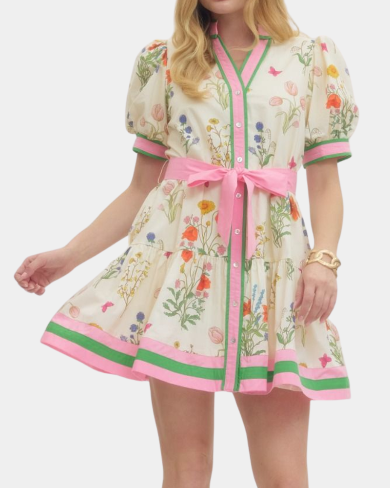 Strapless Bubble Mini Dress - Yellow/Lavender Floral