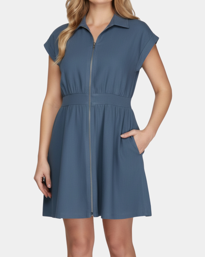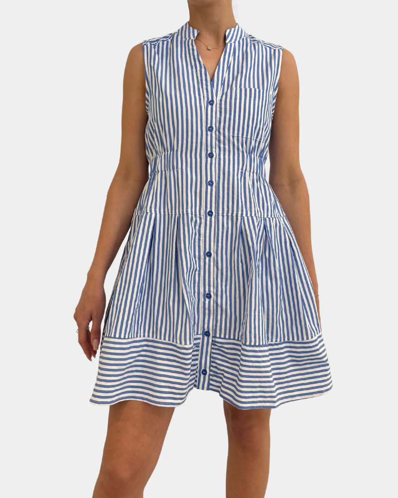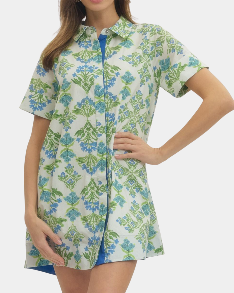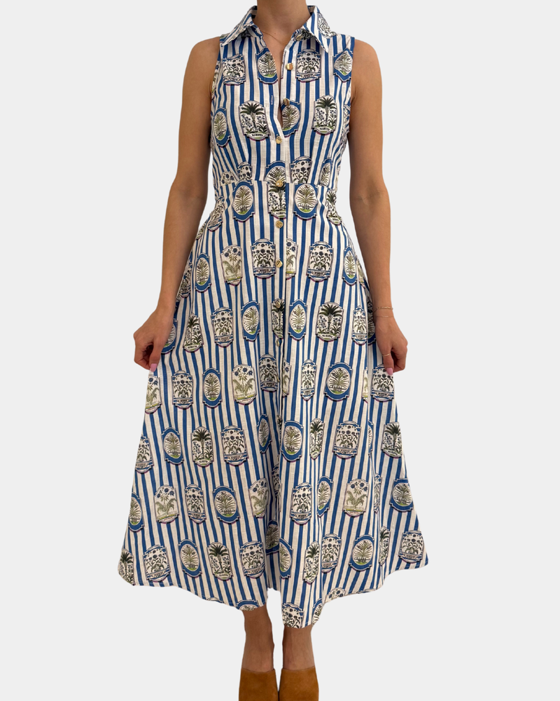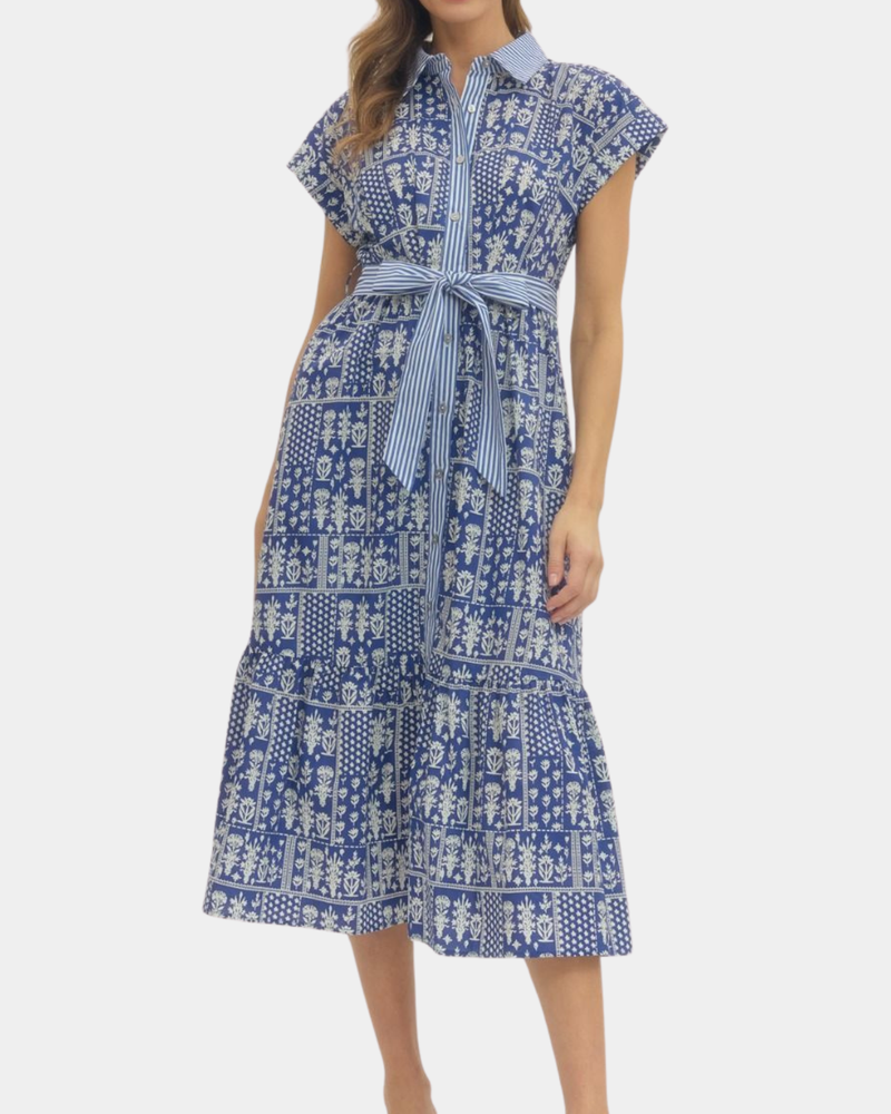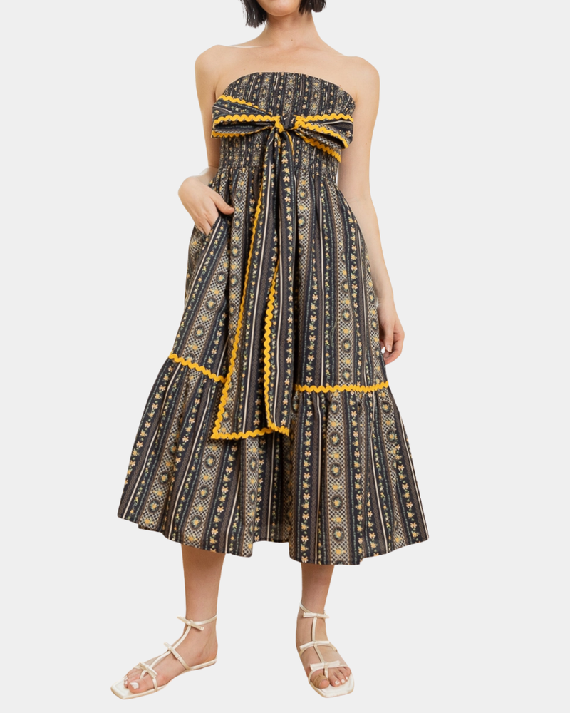 Print Bow Smocked Dress - Navy/Papaya Multi