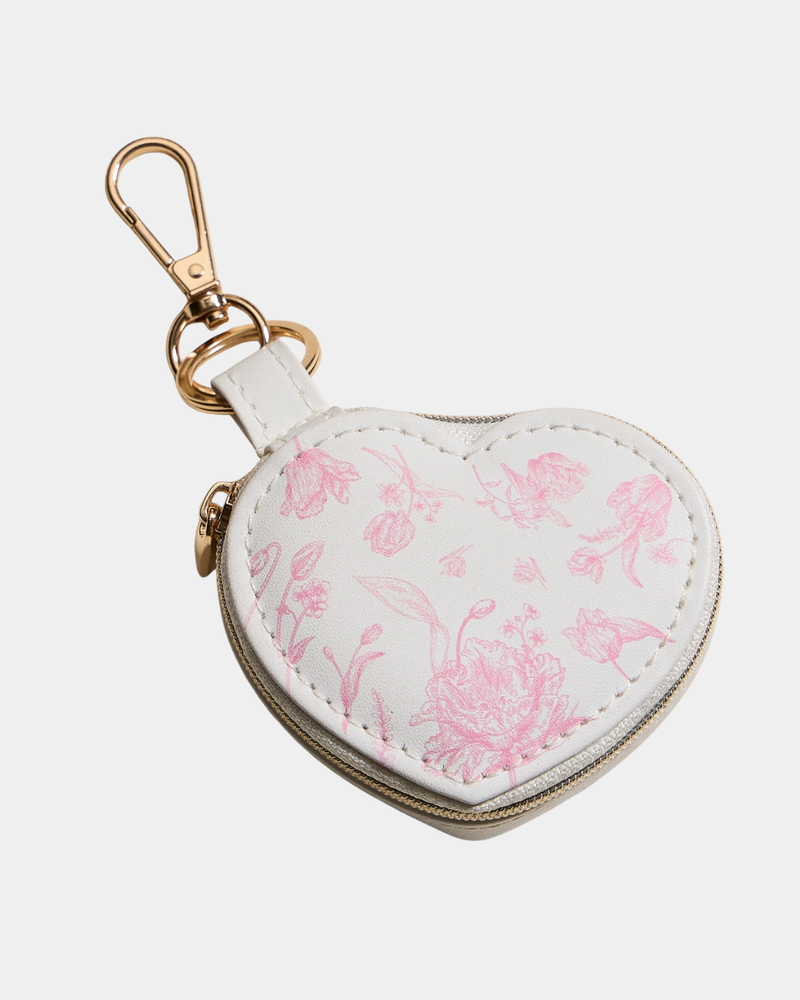 Heart Shaped Travel Case with Keychain - White/Pink Floral