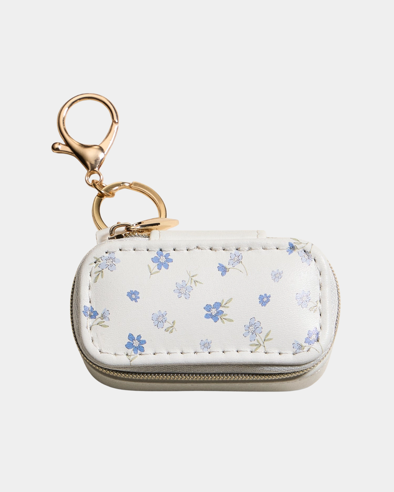 Round Jewelry Travel Case Keychain - White/Pink Floral