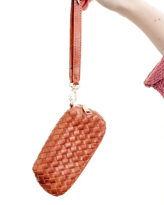Dylan Woven Sunglasses Case Wristlet - Brown