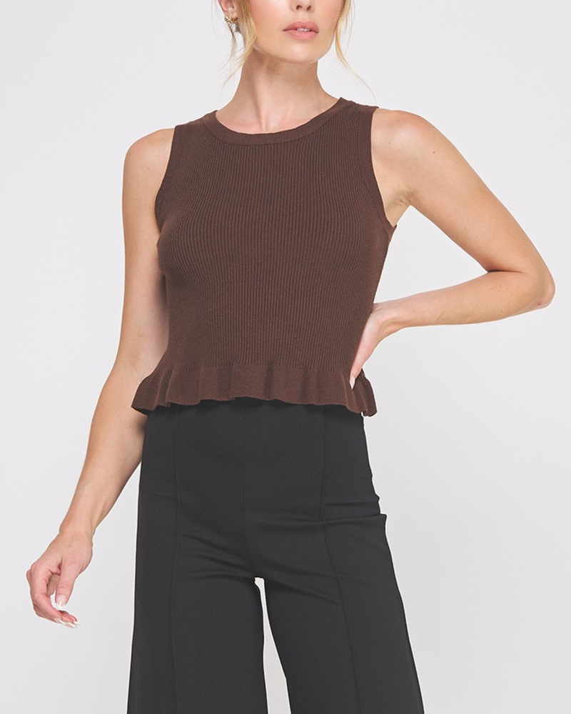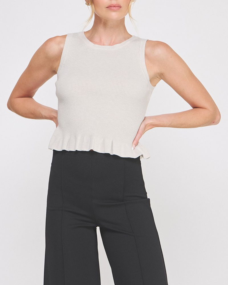 Pointelle Knit Tank Top - Cream Biscuit - FINAL SALE