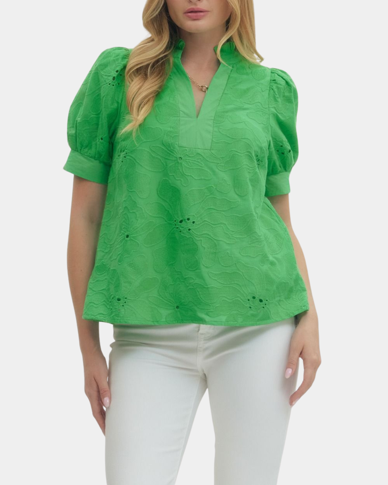 Floral Embroidered Top - Kelly Green