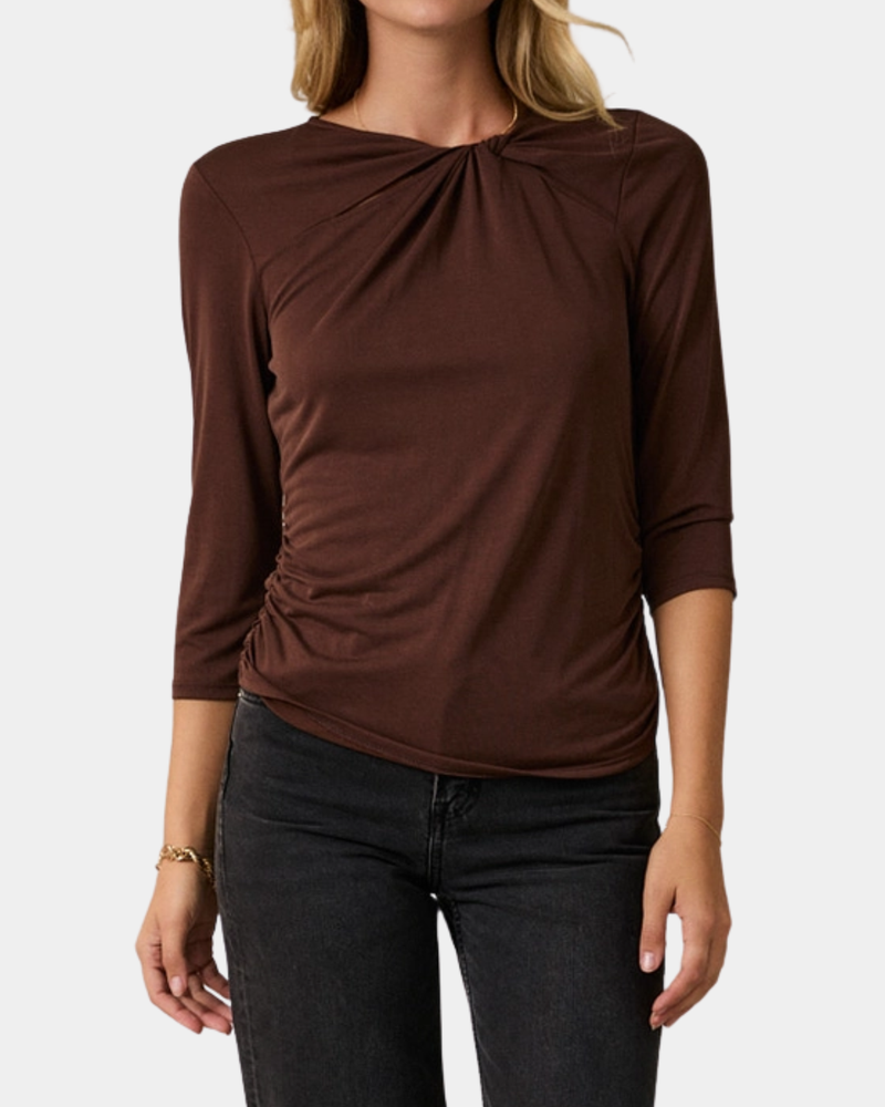 Twist Neck Shirred Top - Mocha