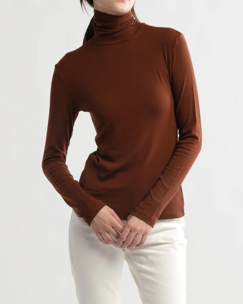 Tencel High Neck Top - Brown