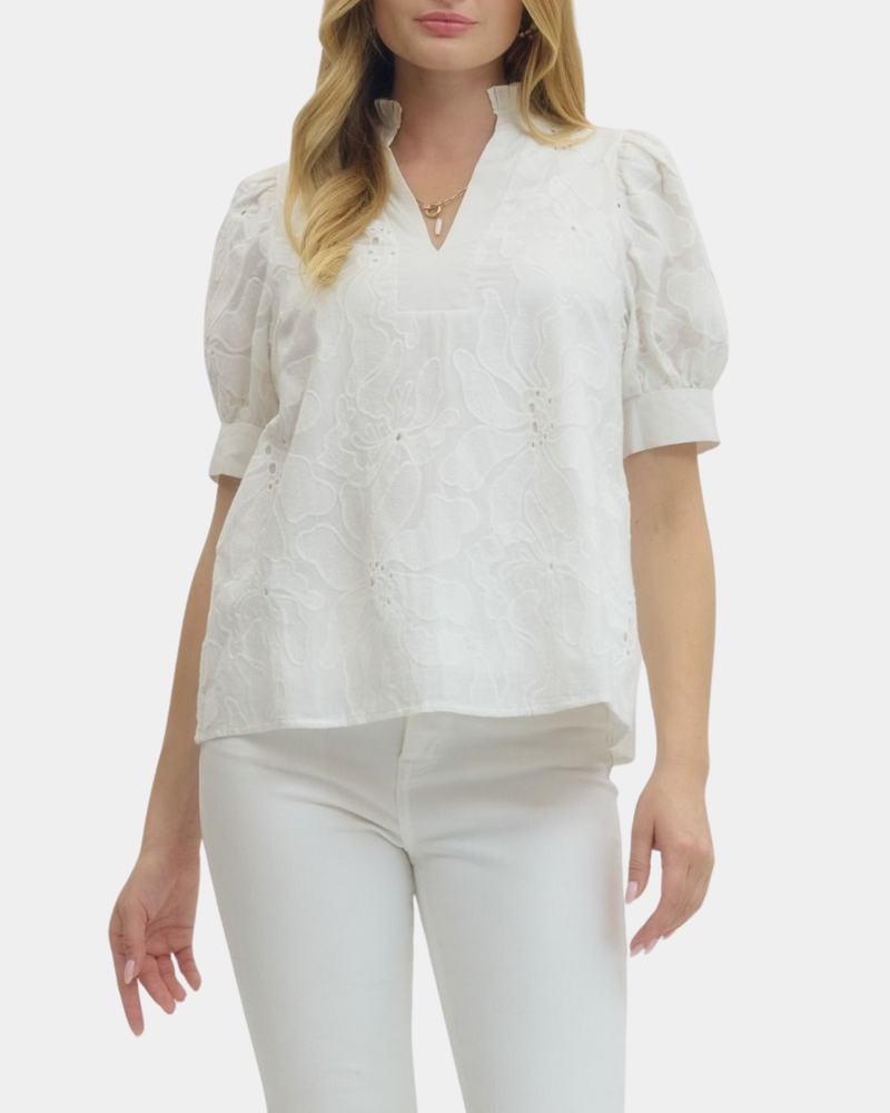 Eyelet Embroidered Top - Off White