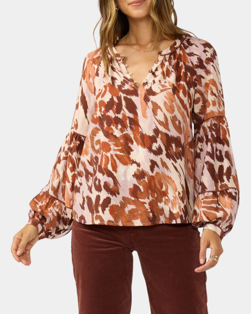 Abstract Print Blouse - Nude/Brown