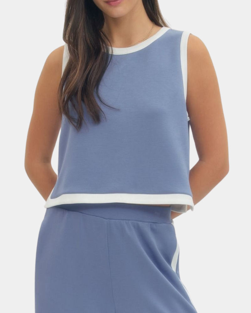 Contrast Sleeveless Top - Chambray