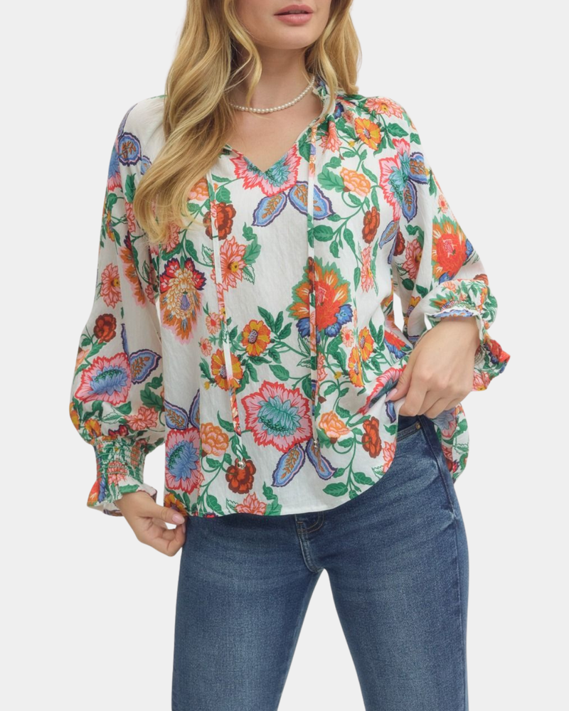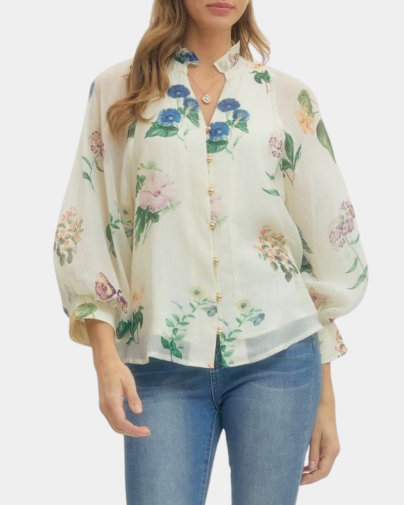 Floral Long Sleeve Top - Cream