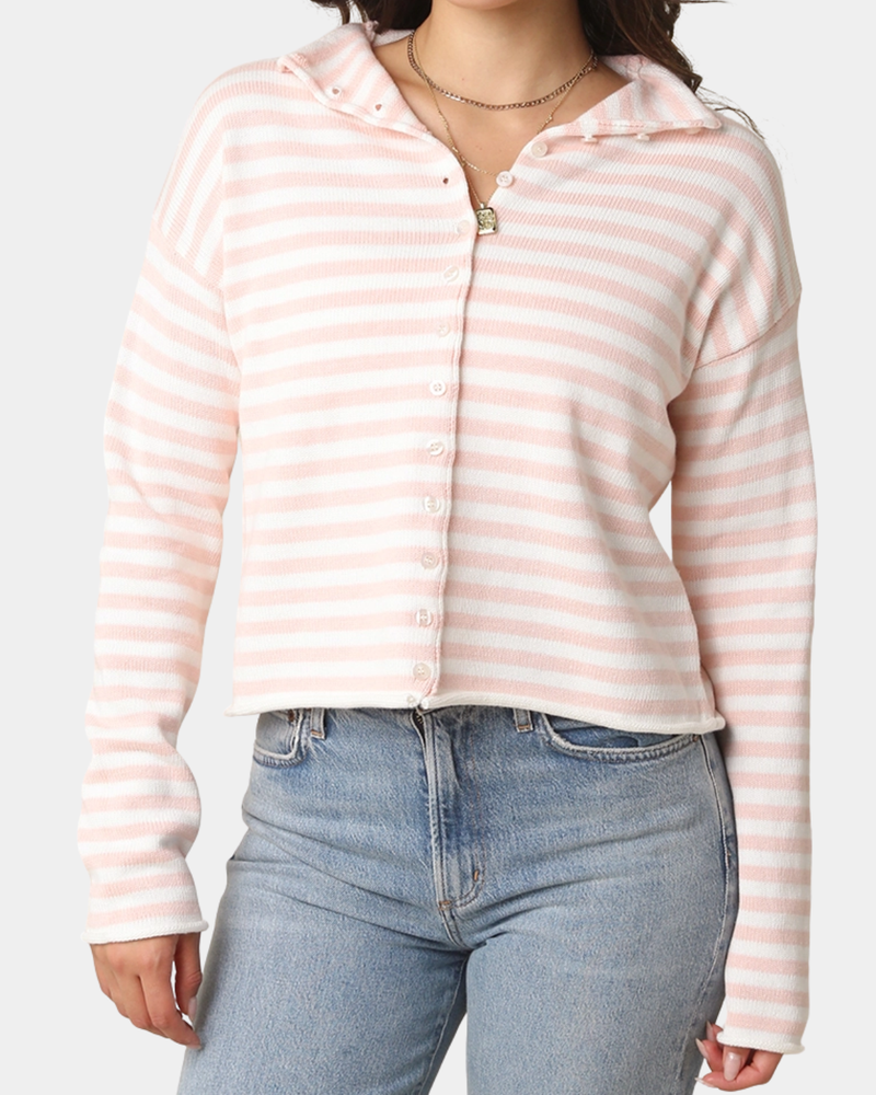 Elina Striped Collar Top - Blush/White