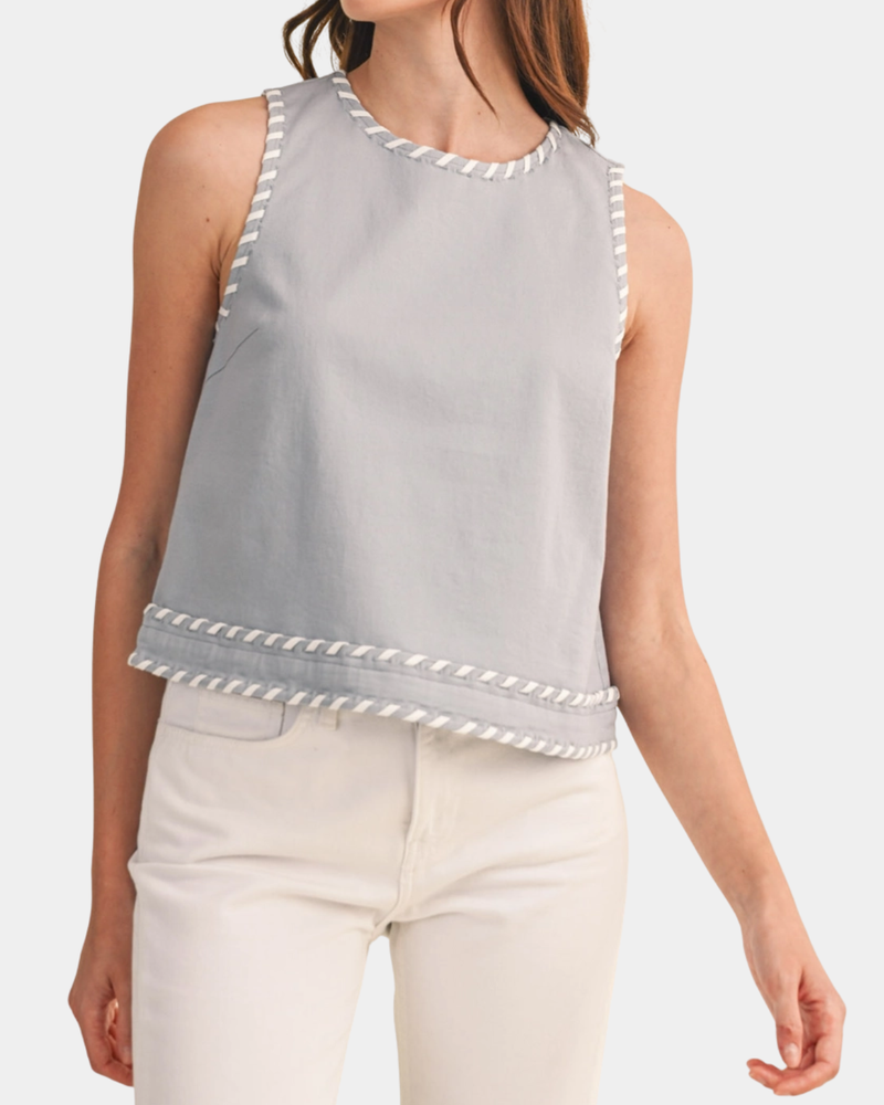 Whip Stitch Tank - Dusty Blue