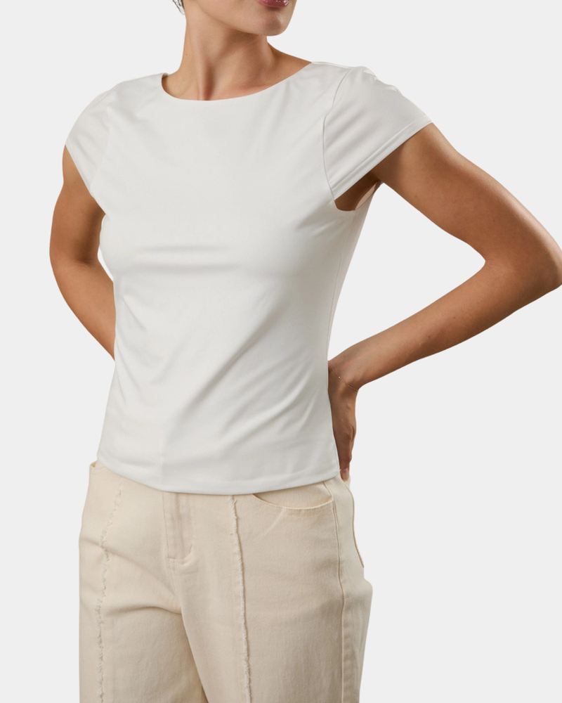 Boat Neck Back Top - White