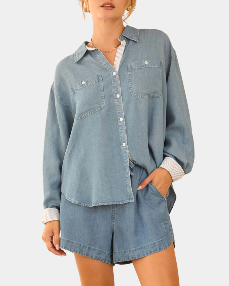 Tencel Shirt with Stripe Cuffs - Chambray Blue