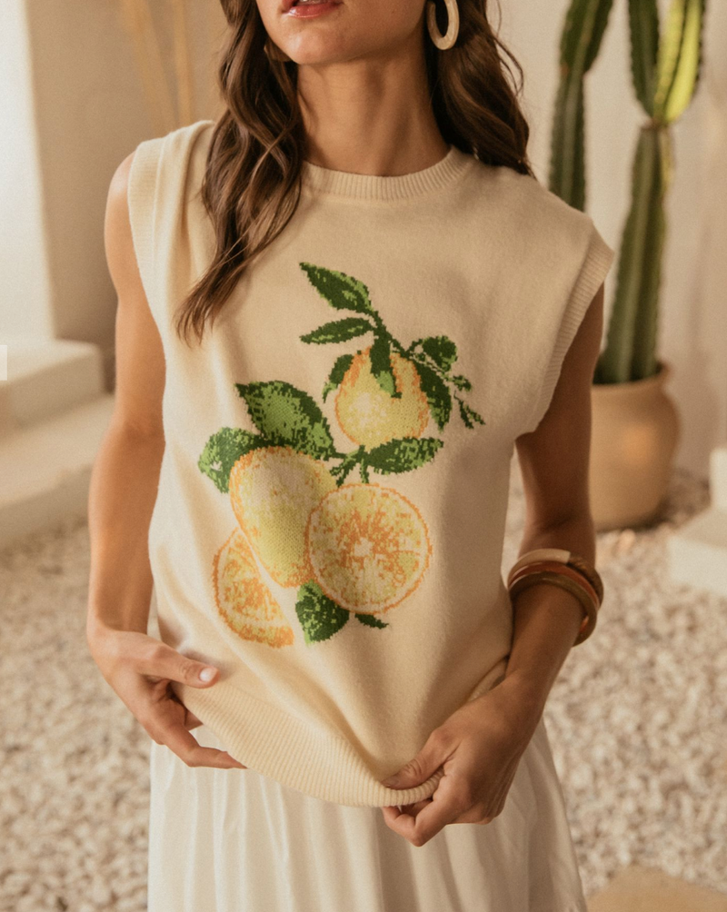 Lemon Print Top and Bottoms Set - Cream/Yellow - FINAL SALE