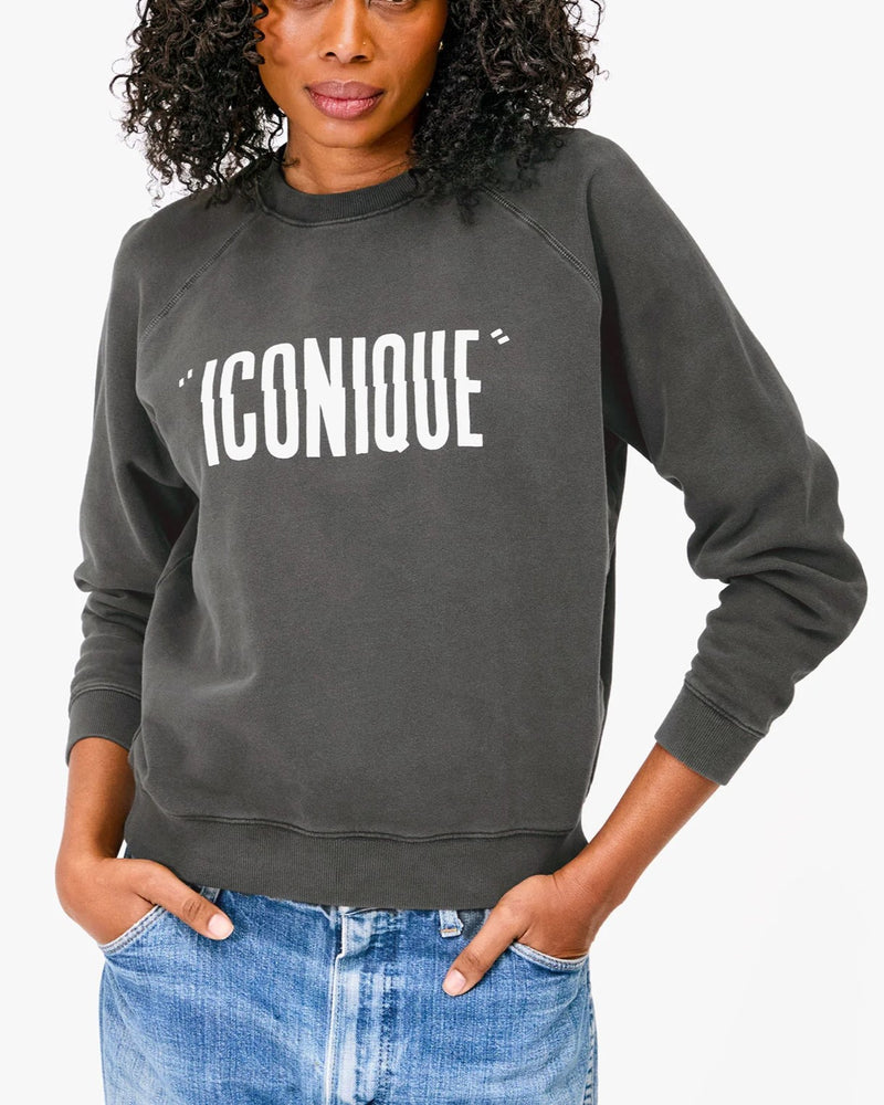 Clare V. Sweatshirt Faded - Black w/Printed Cream Iconique- FINAL SALE