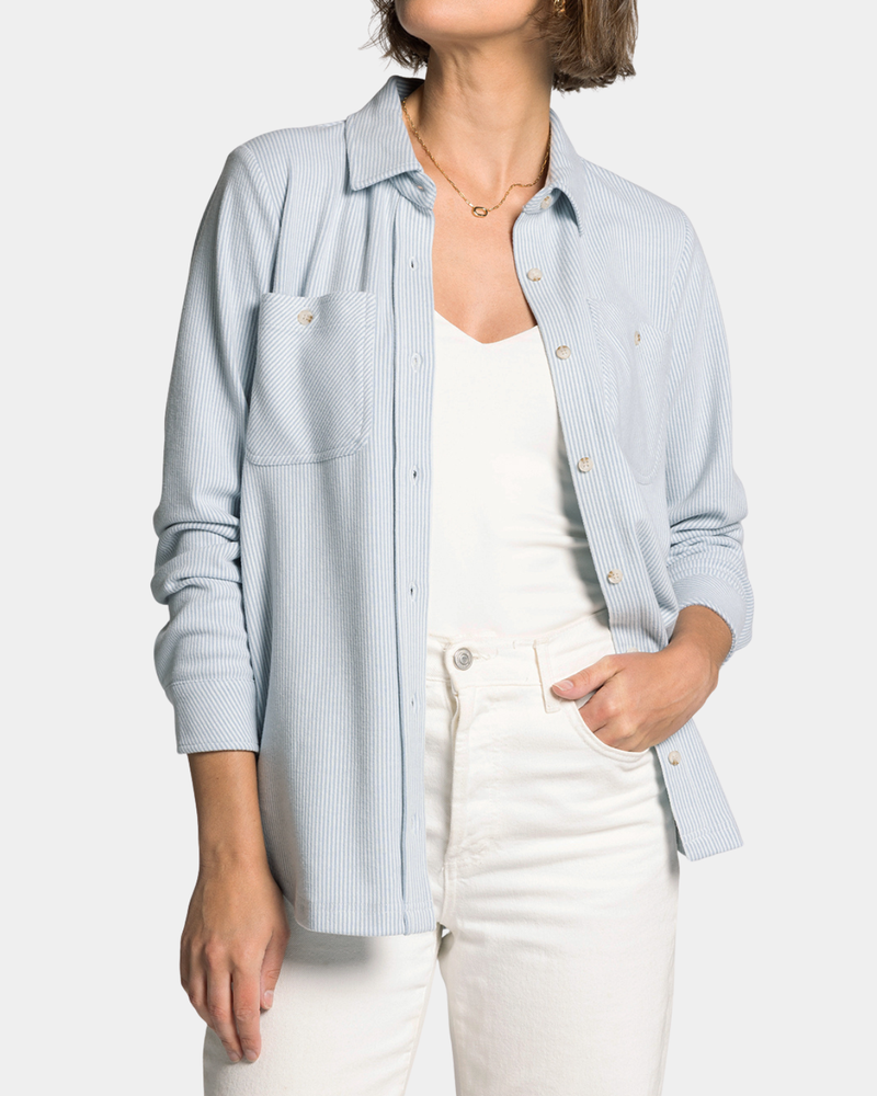 Printed Long Sleeve Blouse - Sapphire Blue - FINAL SALE