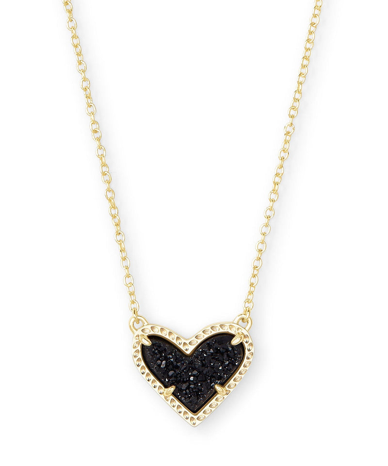 Kendra Scott Ari Heart Pendant Necklace - Black Drusy/Gold