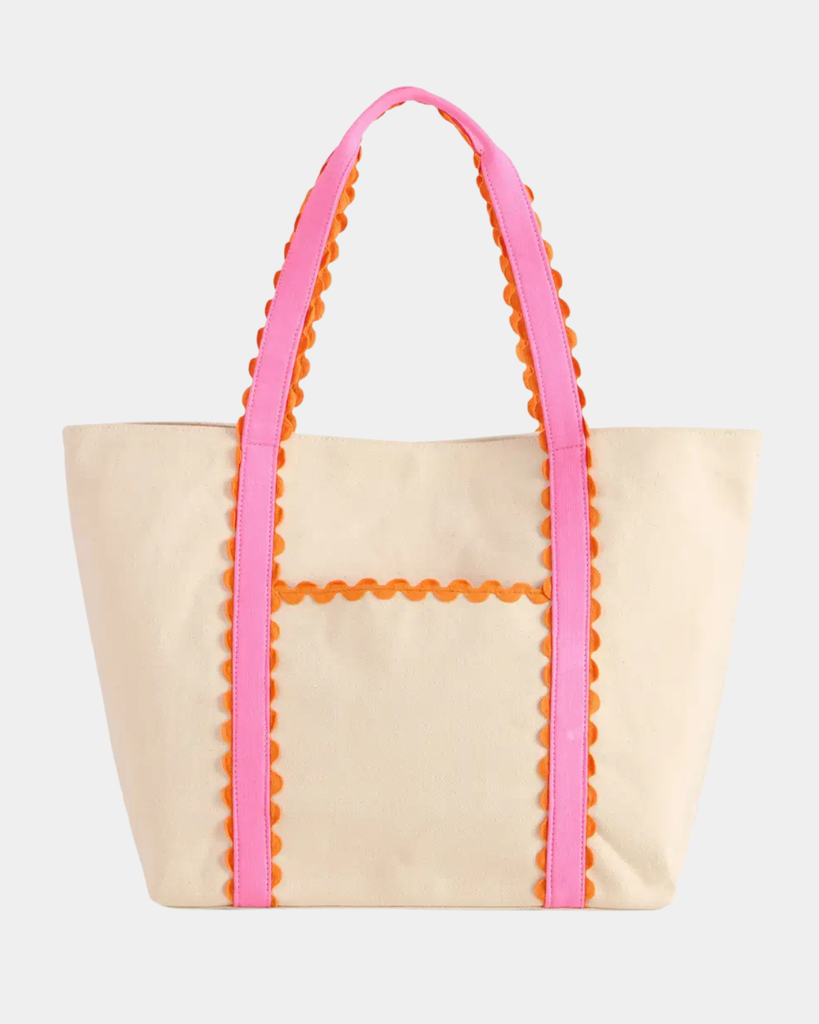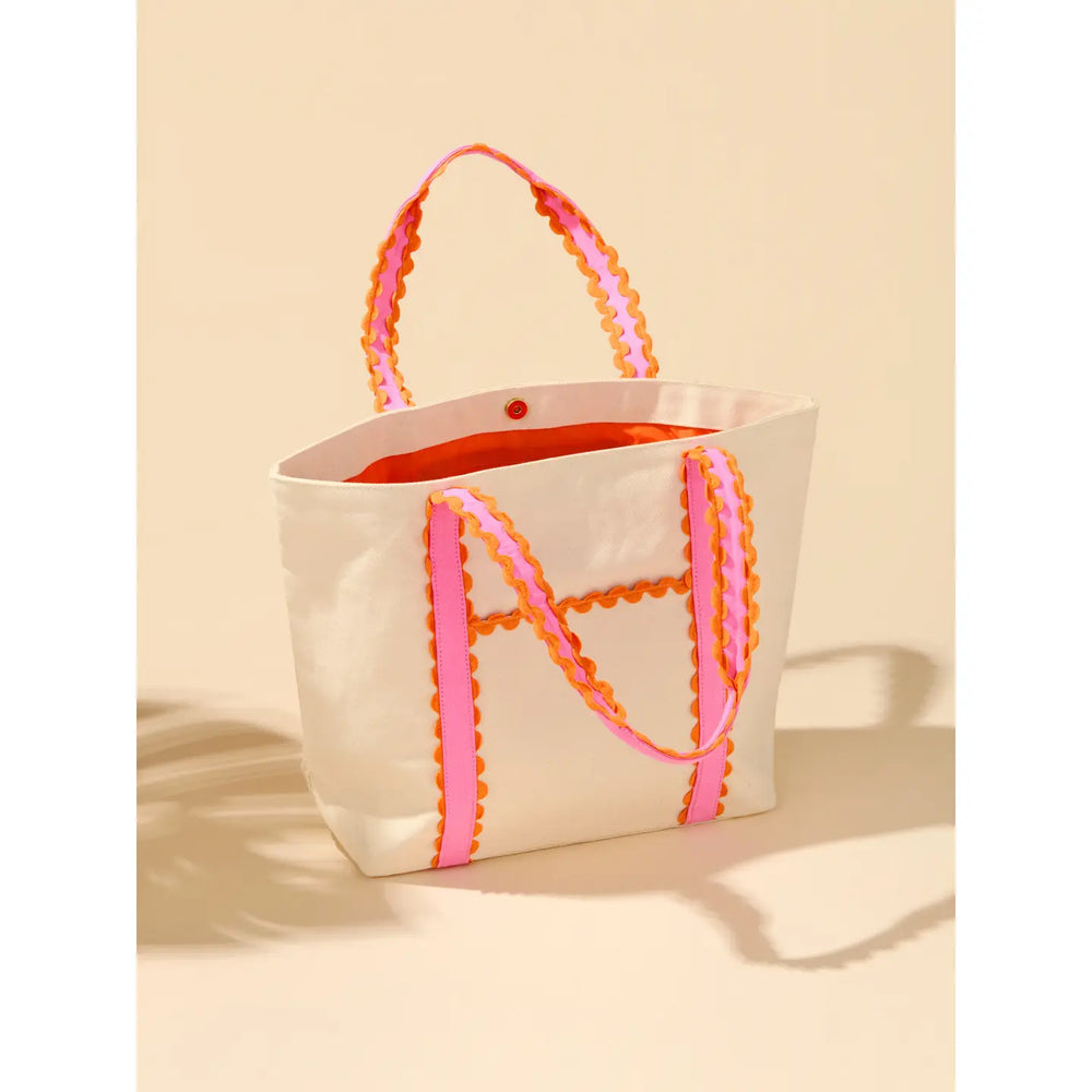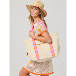 Carry your essentials in style with this playful tote. Spacious cotton construction keeps your day organized with multiple pockets, while a secure magnetic snap closure keeps everything in place. Perfect for work, weekend adventures, or everyday errands.
