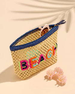 Toss your beach essentials into this charming straw zip pouch and you're ready to go! Woven from natural straw with a fun, functional design, it's the perfect companion for sunscreen, sunglasses, and all those little treasures you collect by the shore.